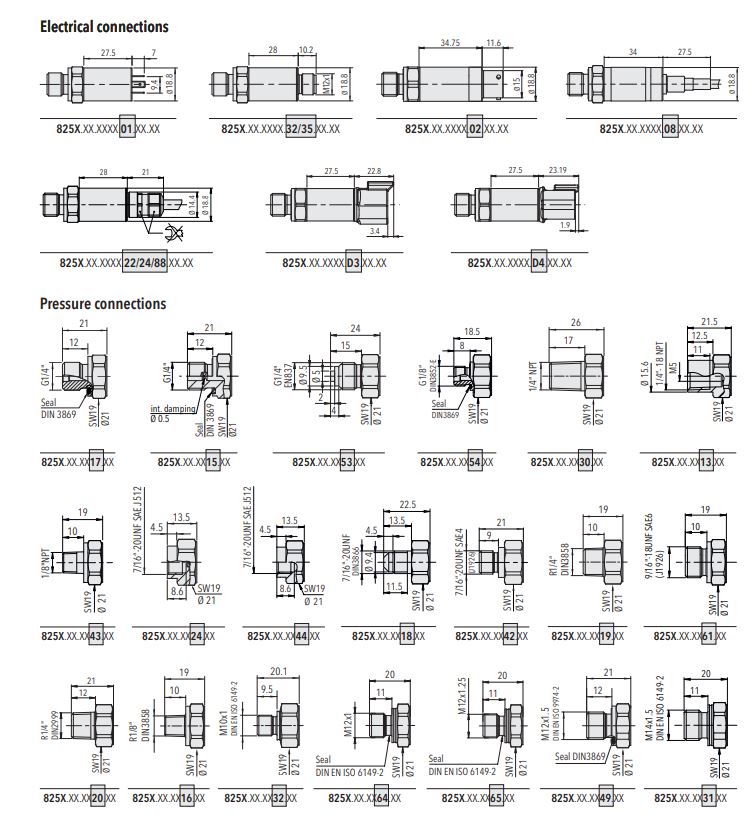 - M10x1 mâle, M12x1.25, M12x1.5 mâle, M14x1.5 mâle ( voir la documentation pour plus de détails)