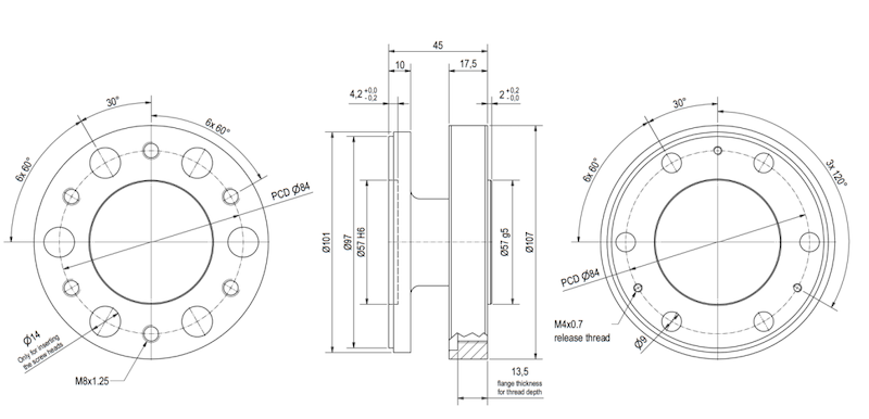 - Montage standardisé du rotor : brides DIN (Ø 84 mm à Ø196 mm)