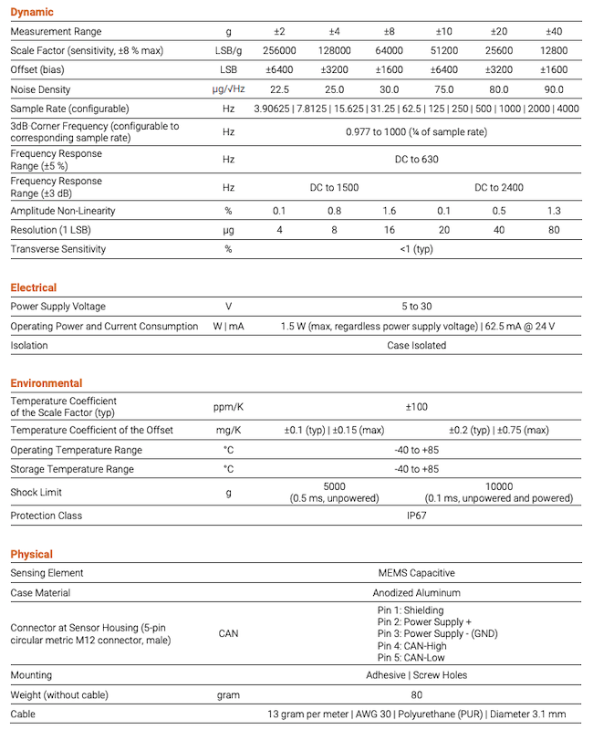 Accéléromètre MEMS capacitif 1 à 3 axes durci - Sortie CANbus