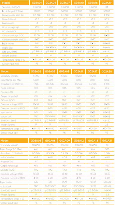 Les convertisseurs de charge en ligne G02AXXtransforment la sortie de charge à haute impédance des capteurs piézoélectriques en un signal de tension à faible impédance, permettant ainsi de s’intégrer aux systèmes à courant constant IEPE (Integrated Electronics Piezoelectric).