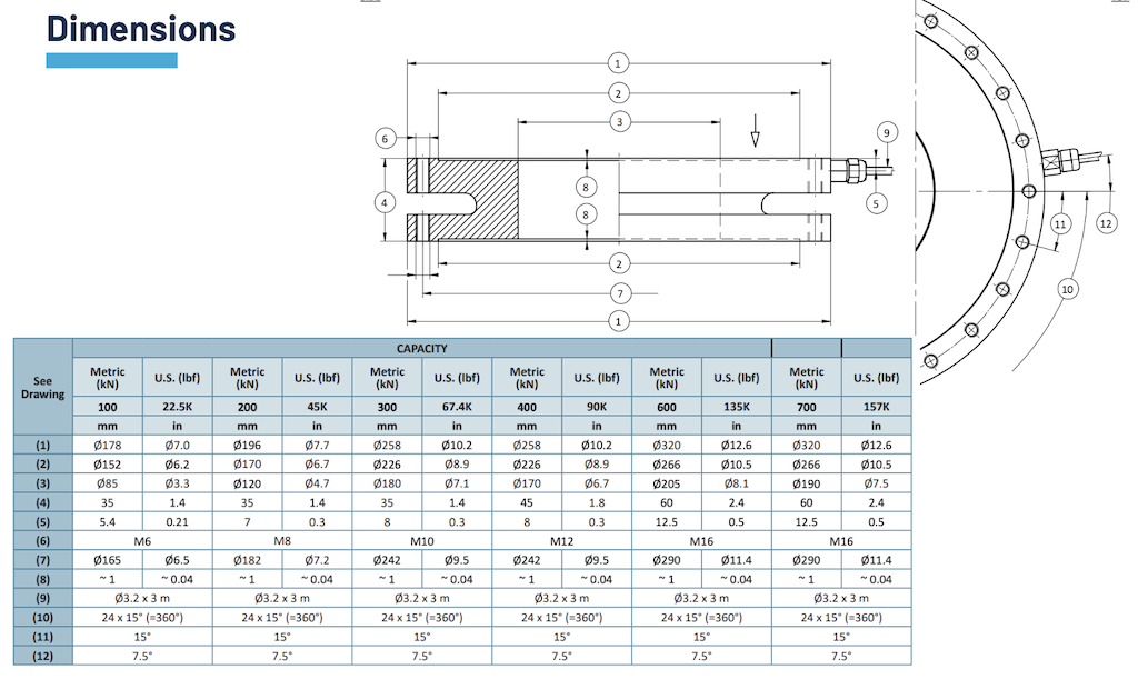 Capteur de force annulaire traction / compression - ±100 à ±600 KN