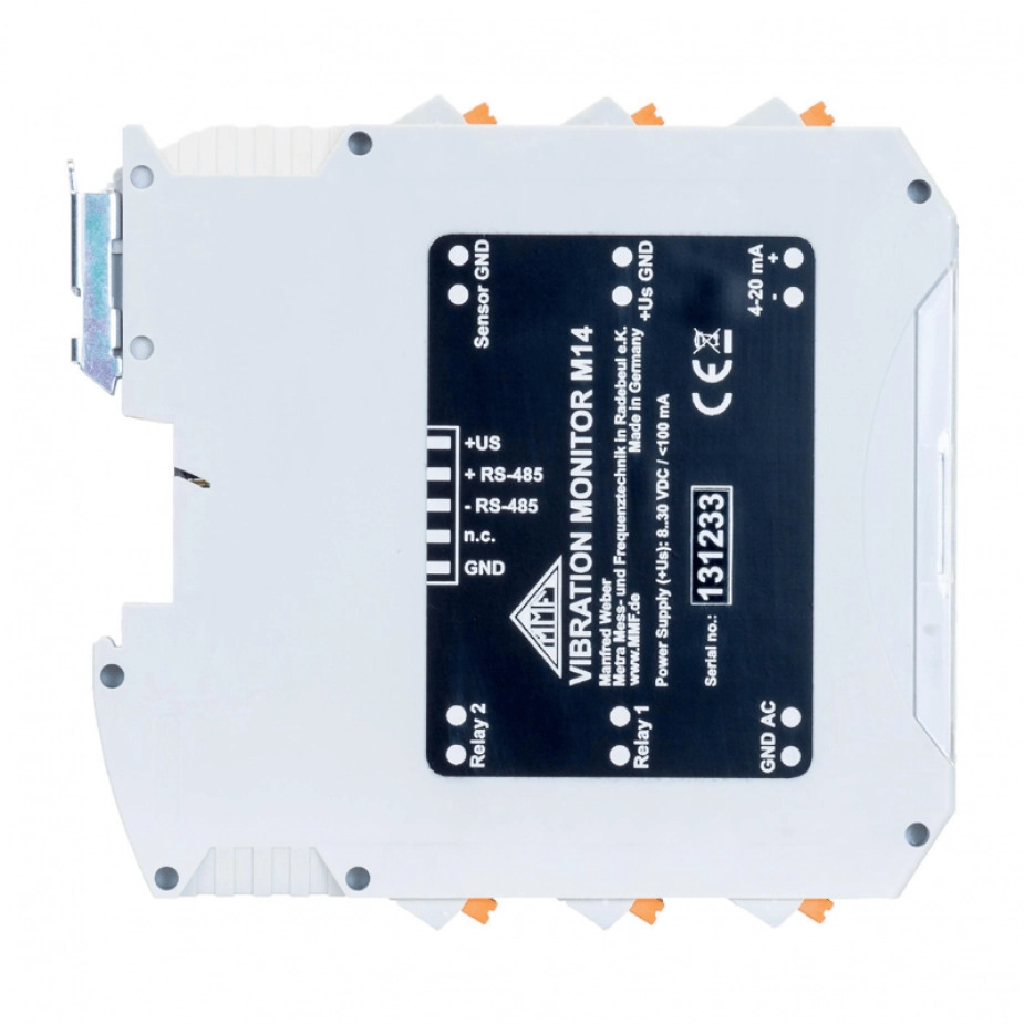 Le M14 est un moniteur de vibration universel conçu pour la surveillance continue des machines industrielles. Polyvalent et robuste, il intègre l’acquisition du signal, l’analyse et la gestion des alarmes dans un module compact monté sur rail DIN. Compatible avec les capteurs IEPE ou entrées tension, il permet une mesure précise de l’accélération, de la vitesse ou du déplacement selon les besoins de diagnostic ou de maintenance conditionnelle.