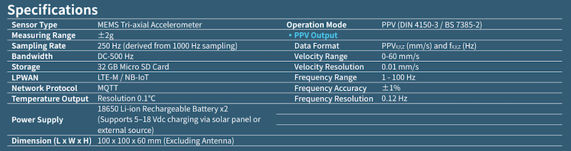 SHAKEdot est un enregistreur de vibrations autonome conçu pour la surveillance vibratoire continue (jours, semaines, mois, années) et la sécurisation de chantiers, bâtiments, monuments historiques, ouvrages d'art et autres infrastructures sensibles. SHAKEdot est alimenté par deux batteries au lithium 18650, et intègre un circuit de charge en tension continue (5 à 18 VCC). Les données collectées sont sauvegardées localement sur une carte micro-SD de capacité suffisante pour plus d'un millions d'échantillons de données (32 Go). Le SHAKEDOT intègre également une connectivité LTE-M et Nb-IOT qui permet l'accès en temps réel et à distance aux données collectées, ainsi que l'implémentation de règles d'alarmes et de notifications automatisées.
