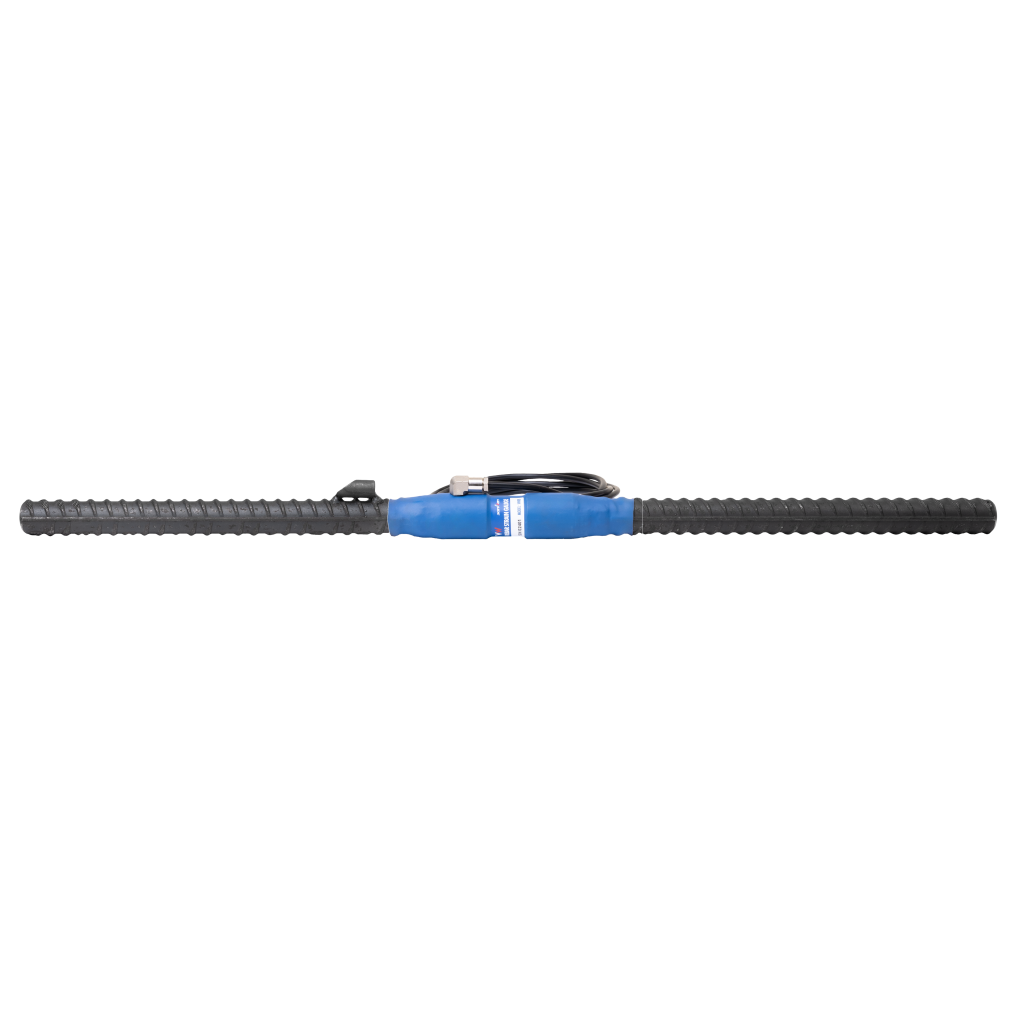 Le VW Rebar est constitué d’une barre d’acier instrumentée, dont la partie centrale intègre une corde vibrante protégée par une gaine plastique assurant le dé-bonding avec le béton environnant. Les extrémités sont conçues pour être soudées à des armatures standard, permettant une continuité mécanique parfaite et un transfert fidèle des déformations. Toute variation de traction ou de compression entraîne une modification de la fréquence du fil vibrant, directement proportionnelle à la déformation appliquée. Ce principe assure des mesures stables, reproductibles et adaptées au suivi comportemental des ouvrages en béton.